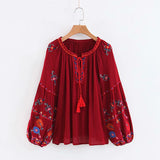 Boho Tops for Women, Boho Tops for Women, Boho Blouse, Embroidery Cotton in Navy, Red, White and Black