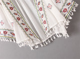 Boho Robe, Embroidery Cotton Robe, White Tassel