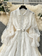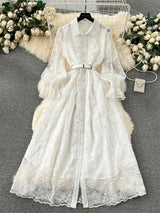 Vintage Boho Maxi Dress - Embroidered Lace Bohemian Style Dress with Black and White Lace Dress Gianna