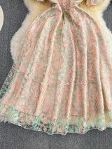 Vintage Boho Midi Dress - Pink Amelia | Embroidered Lace Bohemian Style Dress
