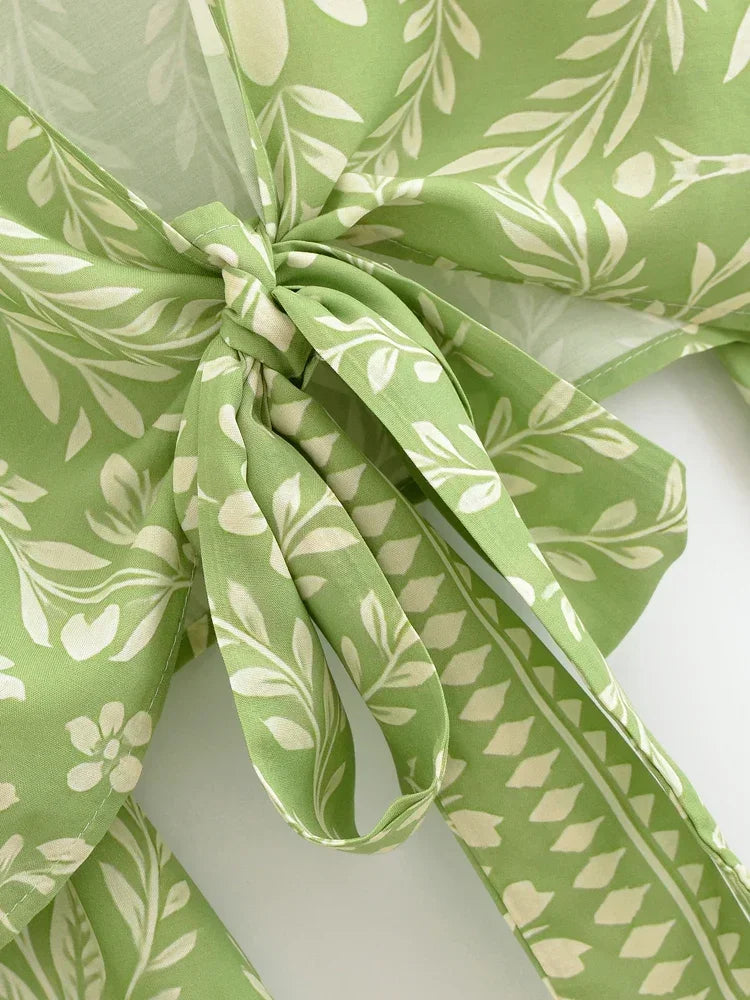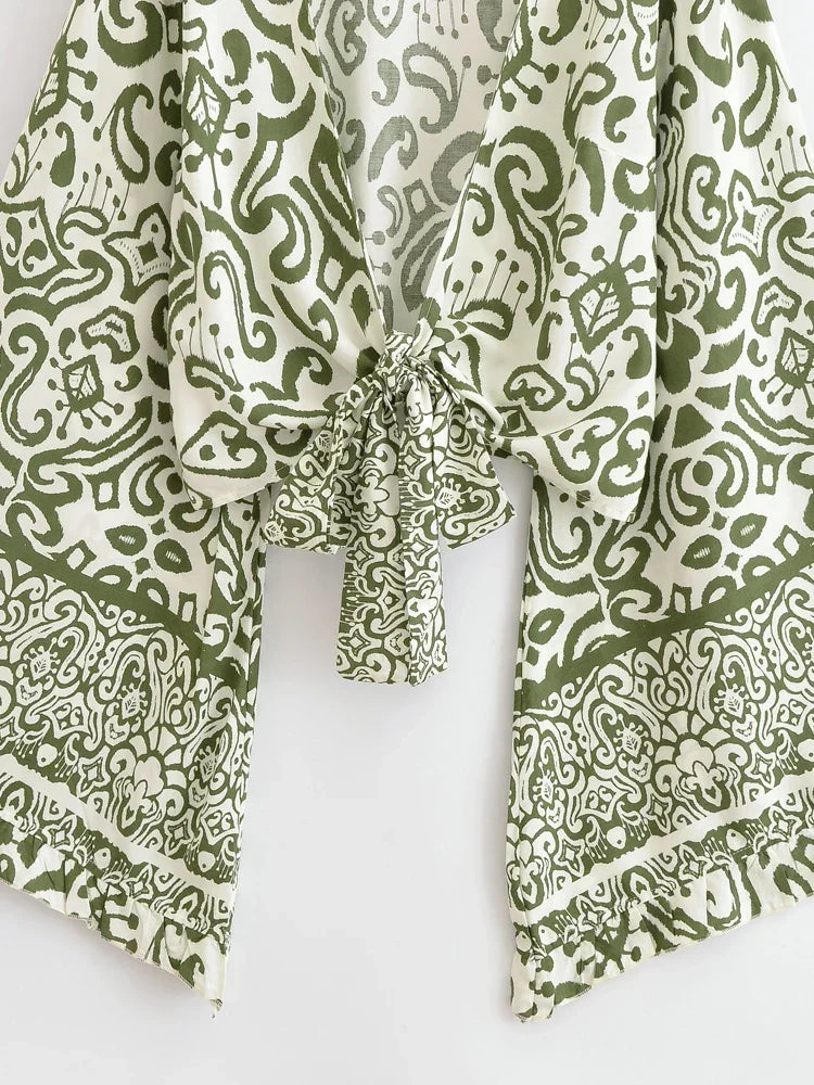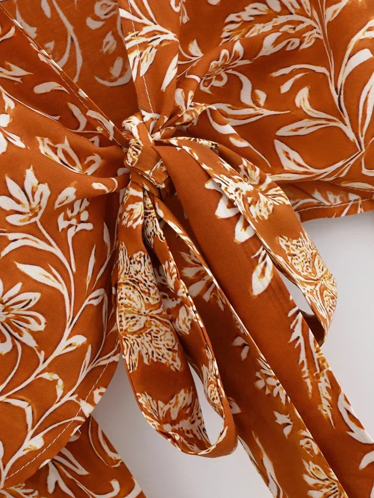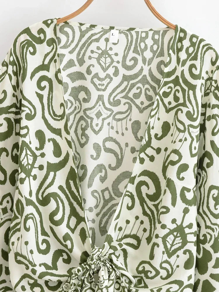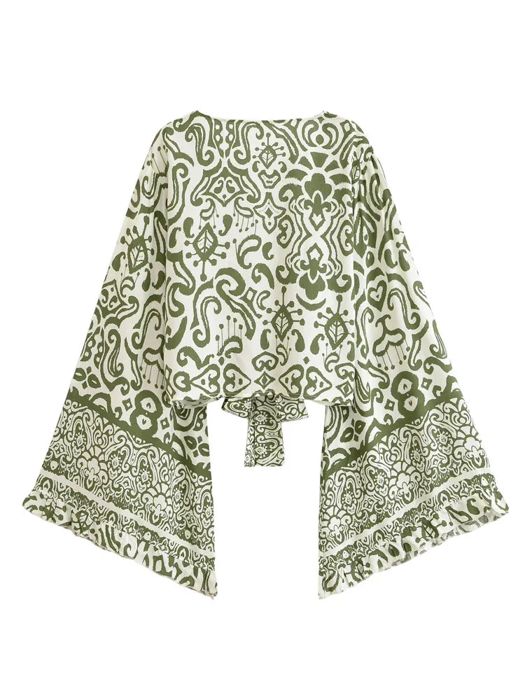 Boho Blouse – ““Seaside Song” Floral Long Sleeve Tie Front Tope