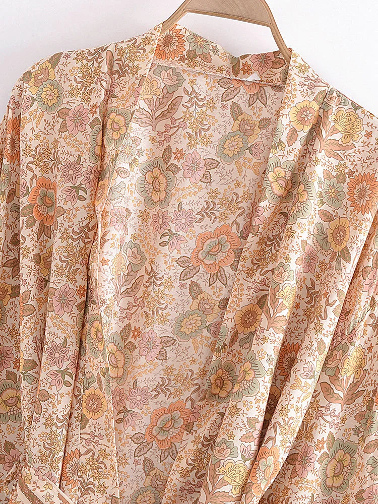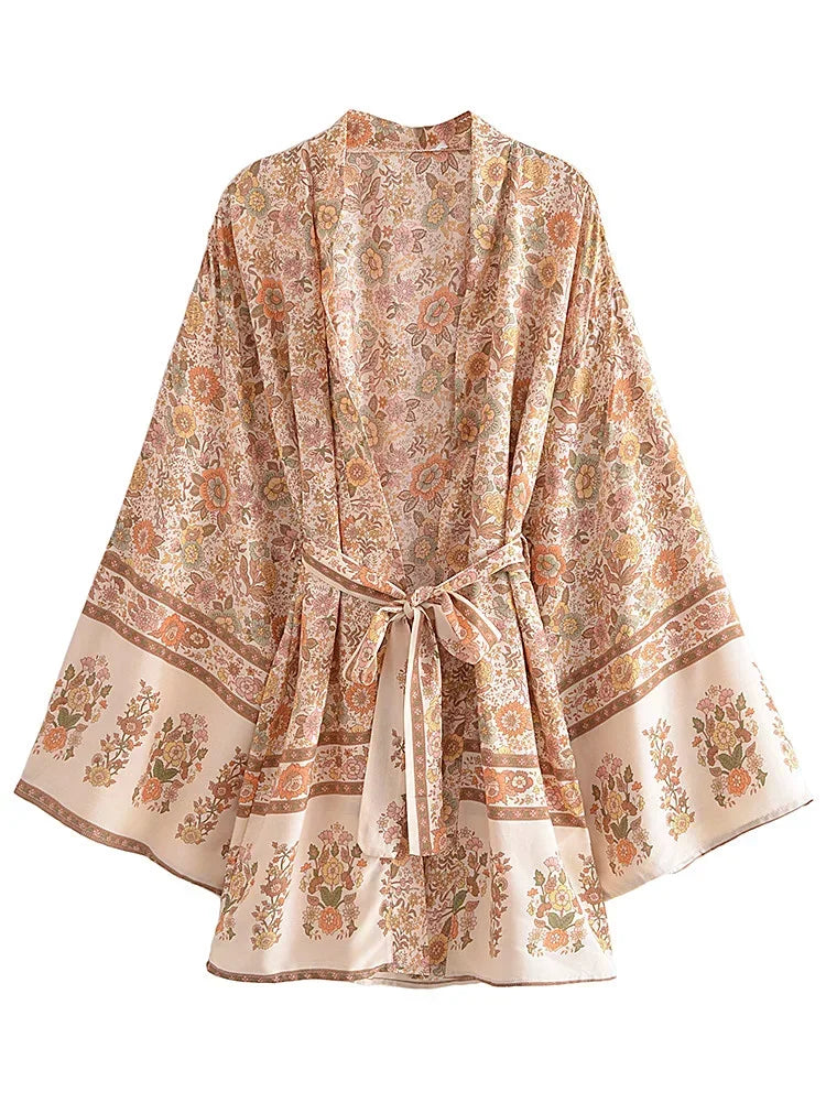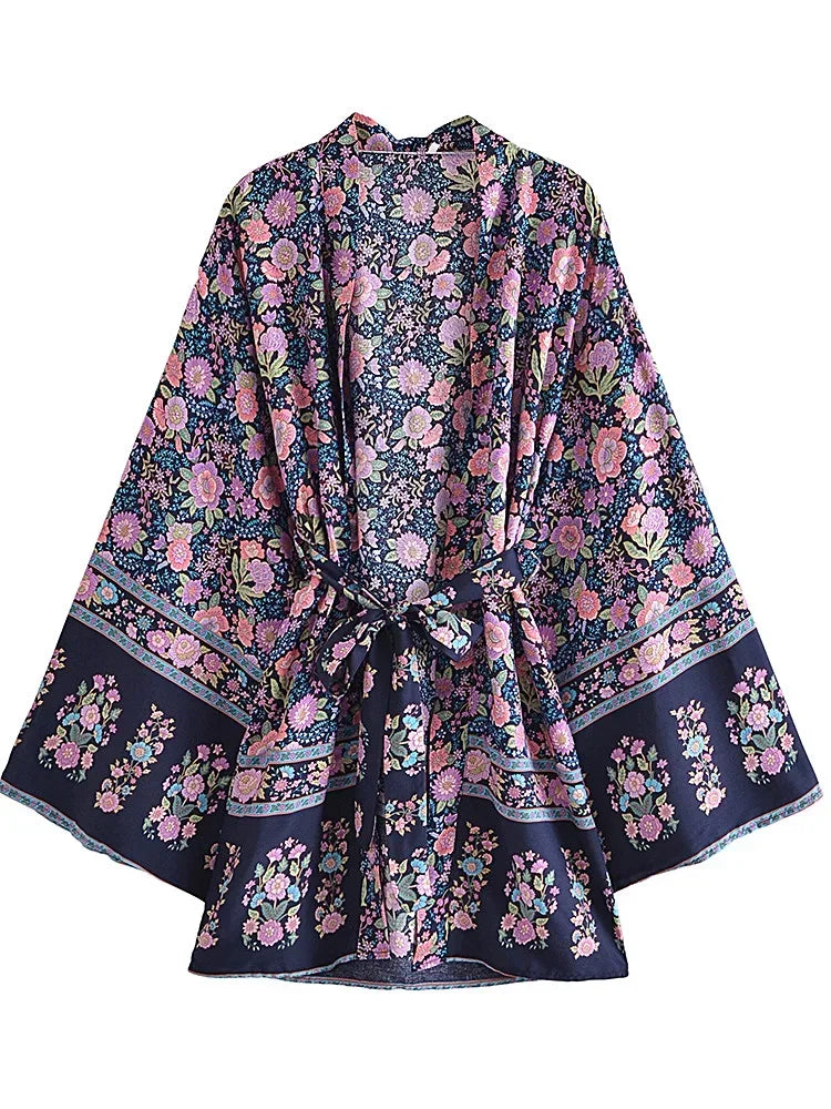 Boho Kimono Robe – “Blue Mirage” Short Cover-Up for Beach & Lounge