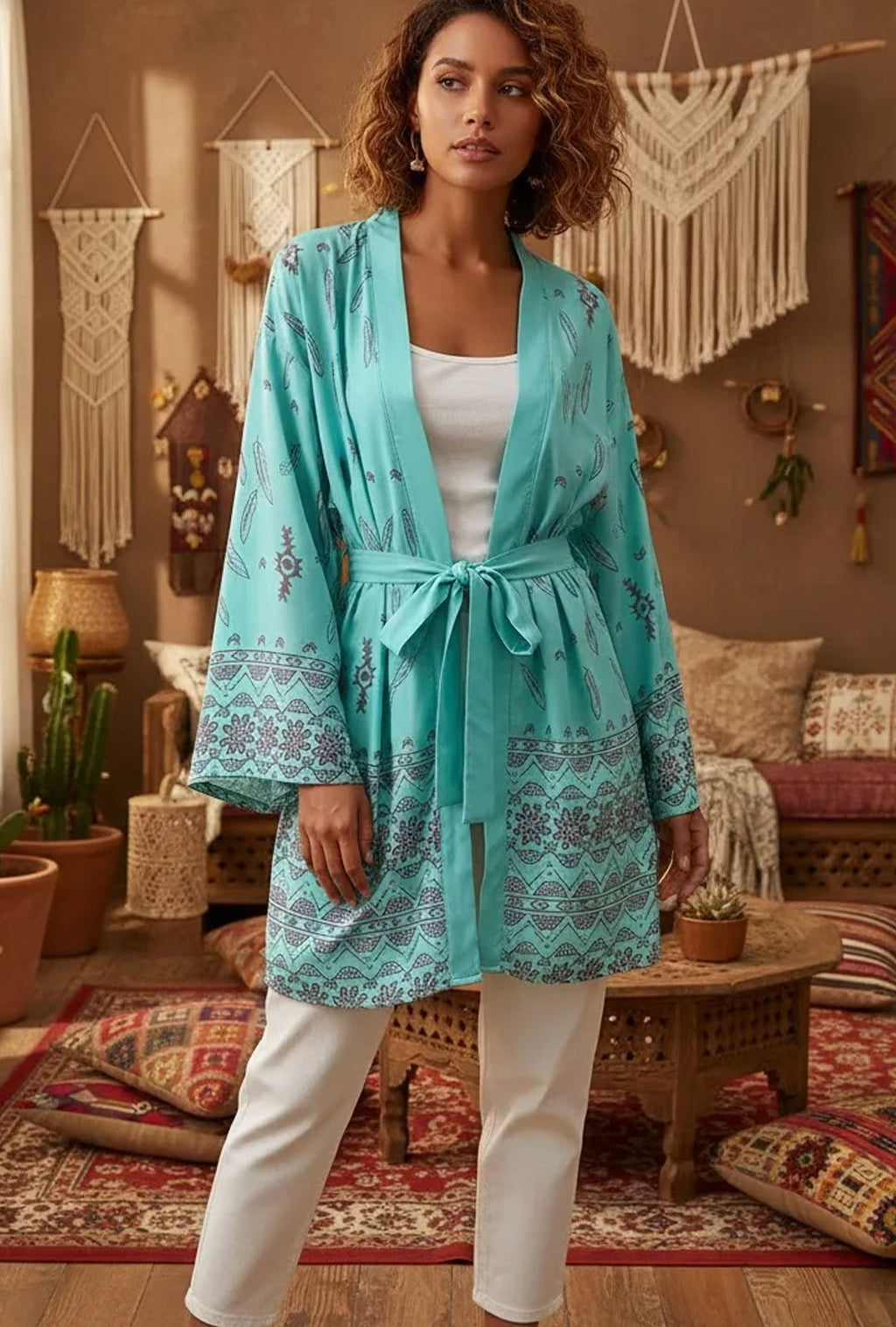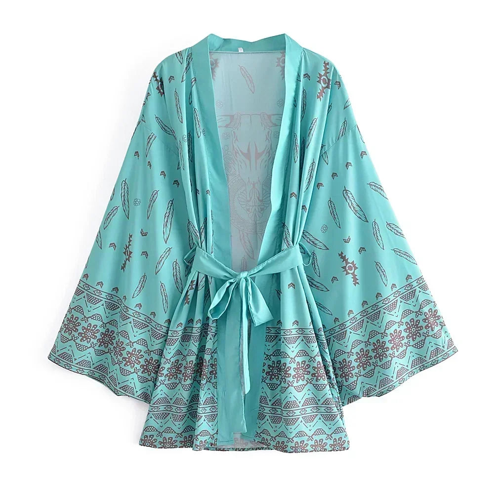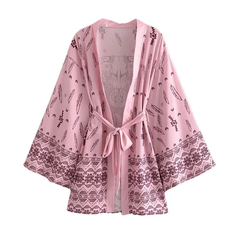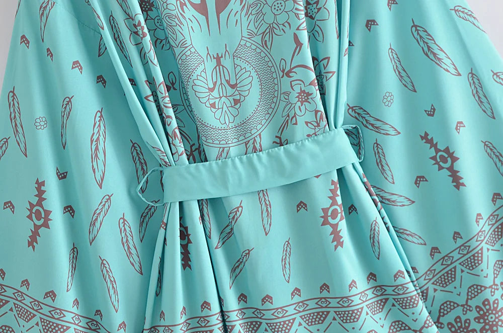 Boho Kimono Robe – “Dreamcatcher Lilac” Soft Loungewear Cover-Up with Bohemian Charm