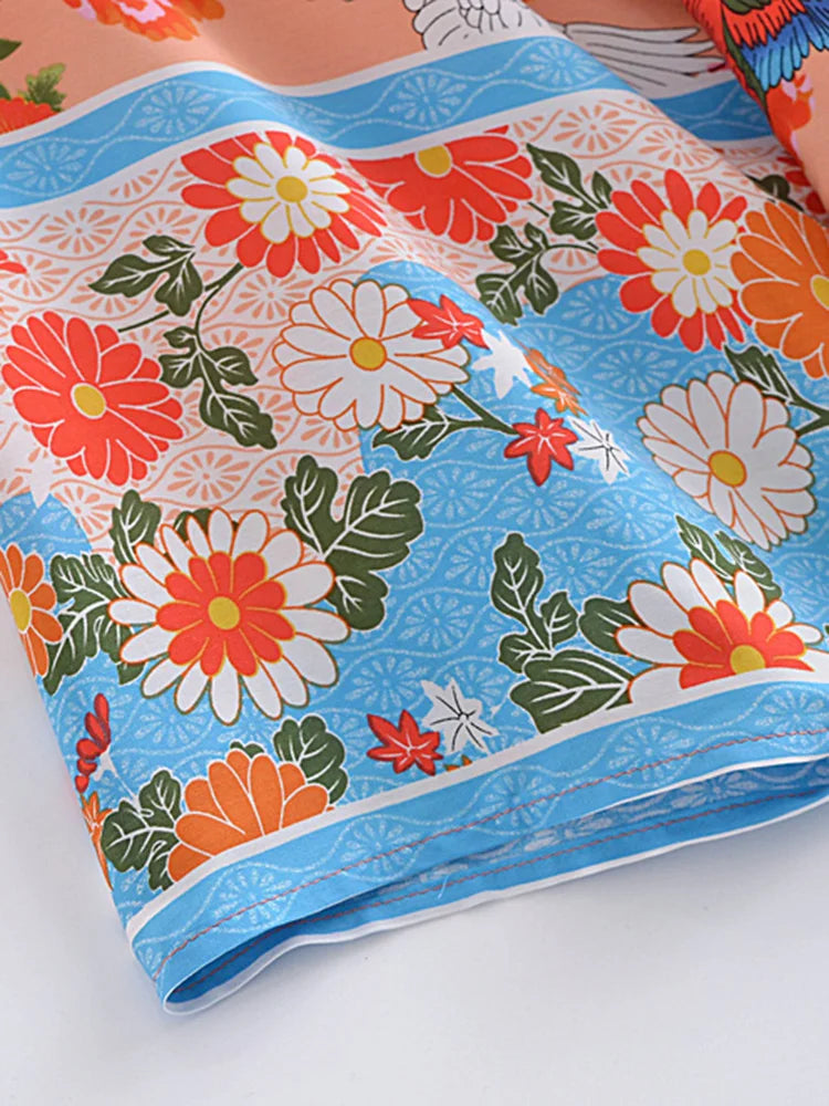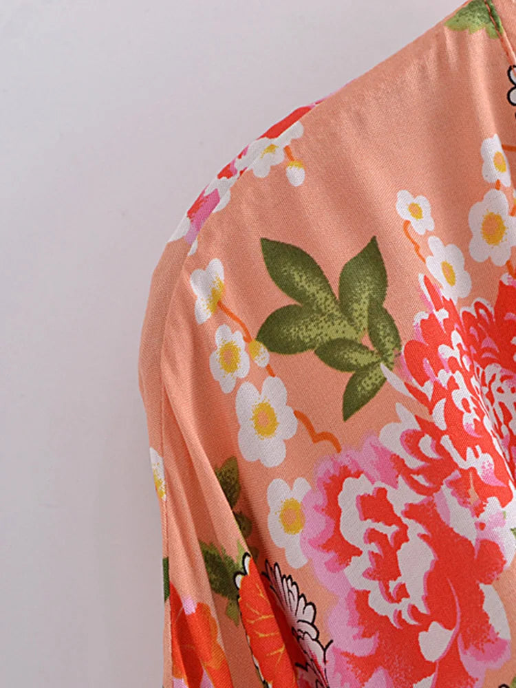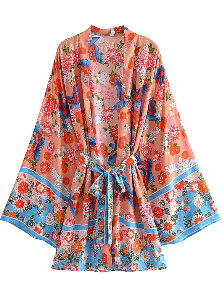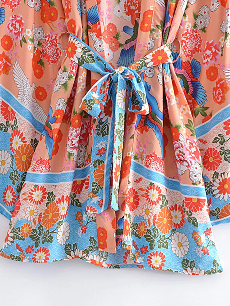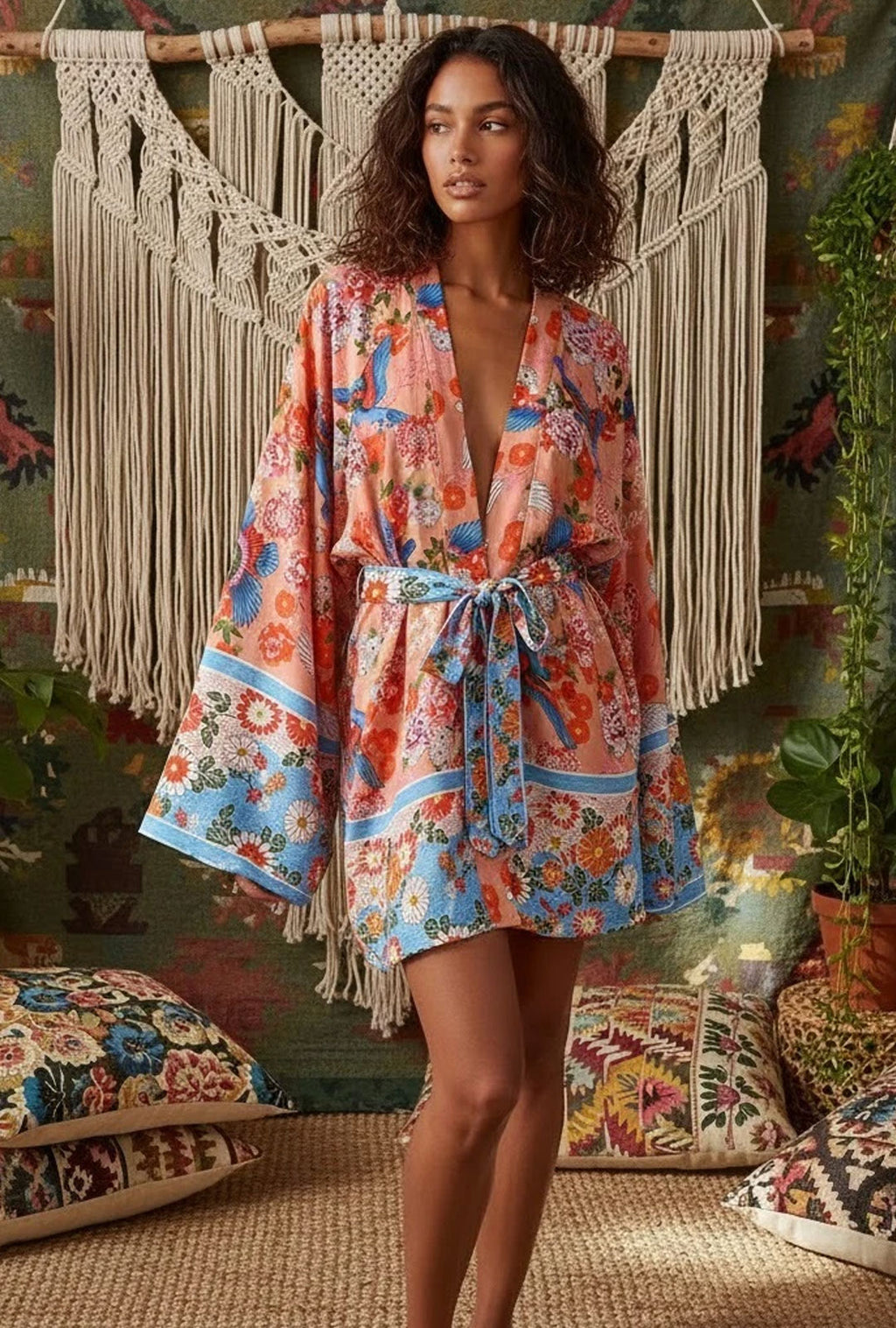 Boho Kimono Robe – “Sunset Bloom” Short Floral Cover-Up for Beach & Lounge