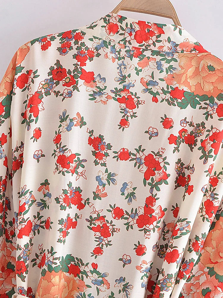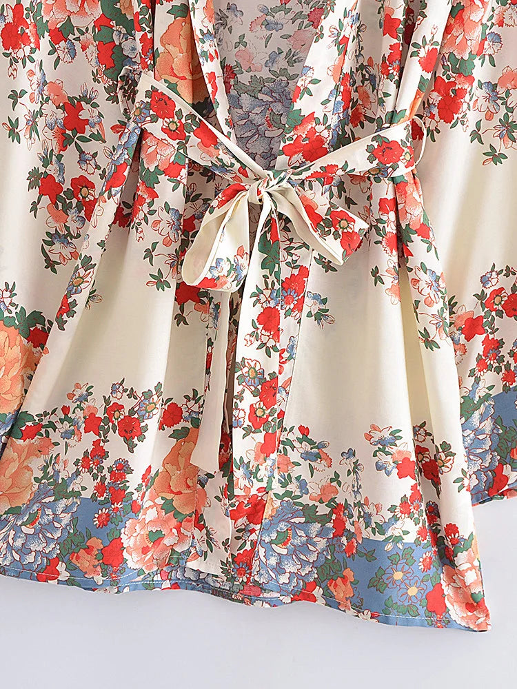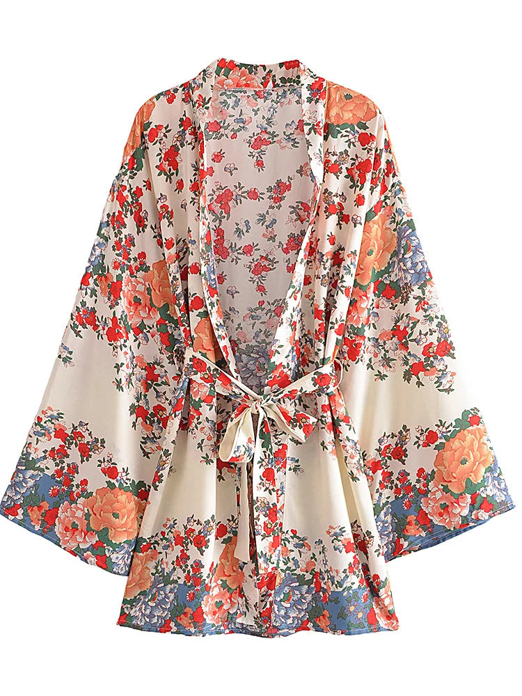 Boho Robe, Kimono Robe, Beach Cover up, Short Robe, Shelta White Floral